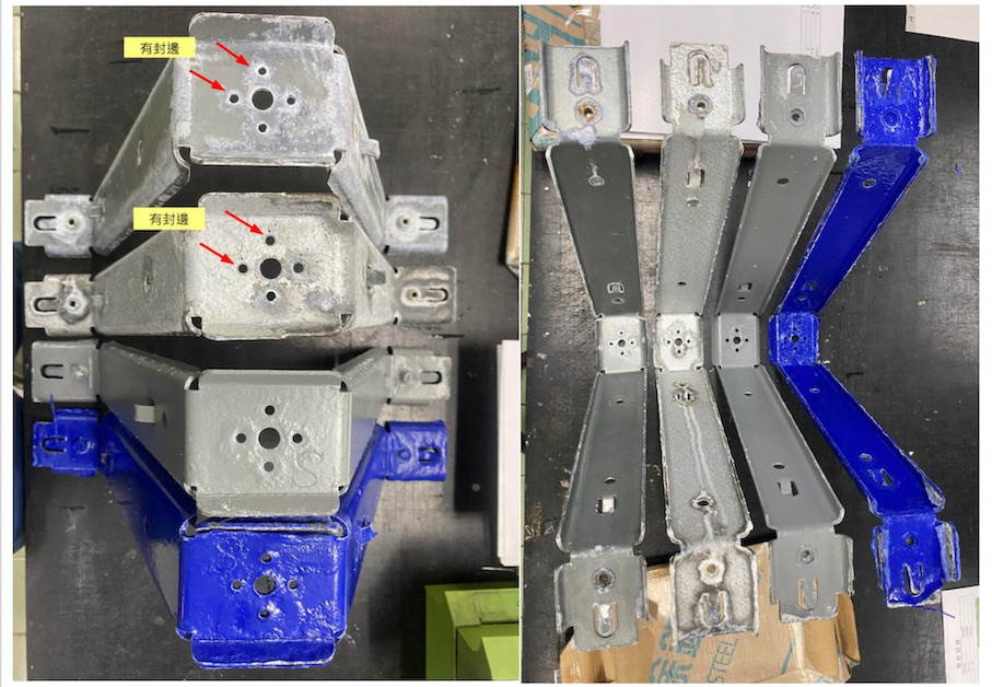 V型腳座CCT循環試驗實測結果:裸裝 V.S塗裝